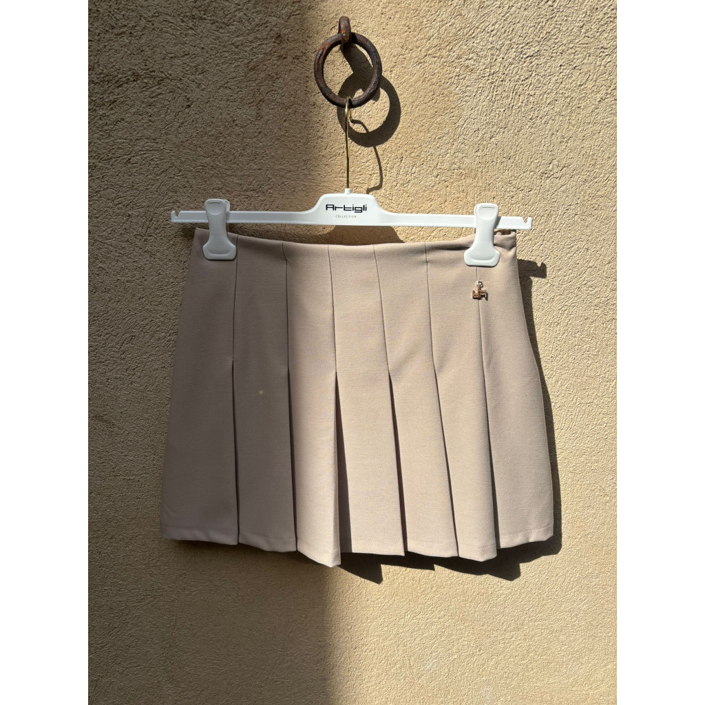 GONNA CORTA A PIEGHE ZIP LATERALE.