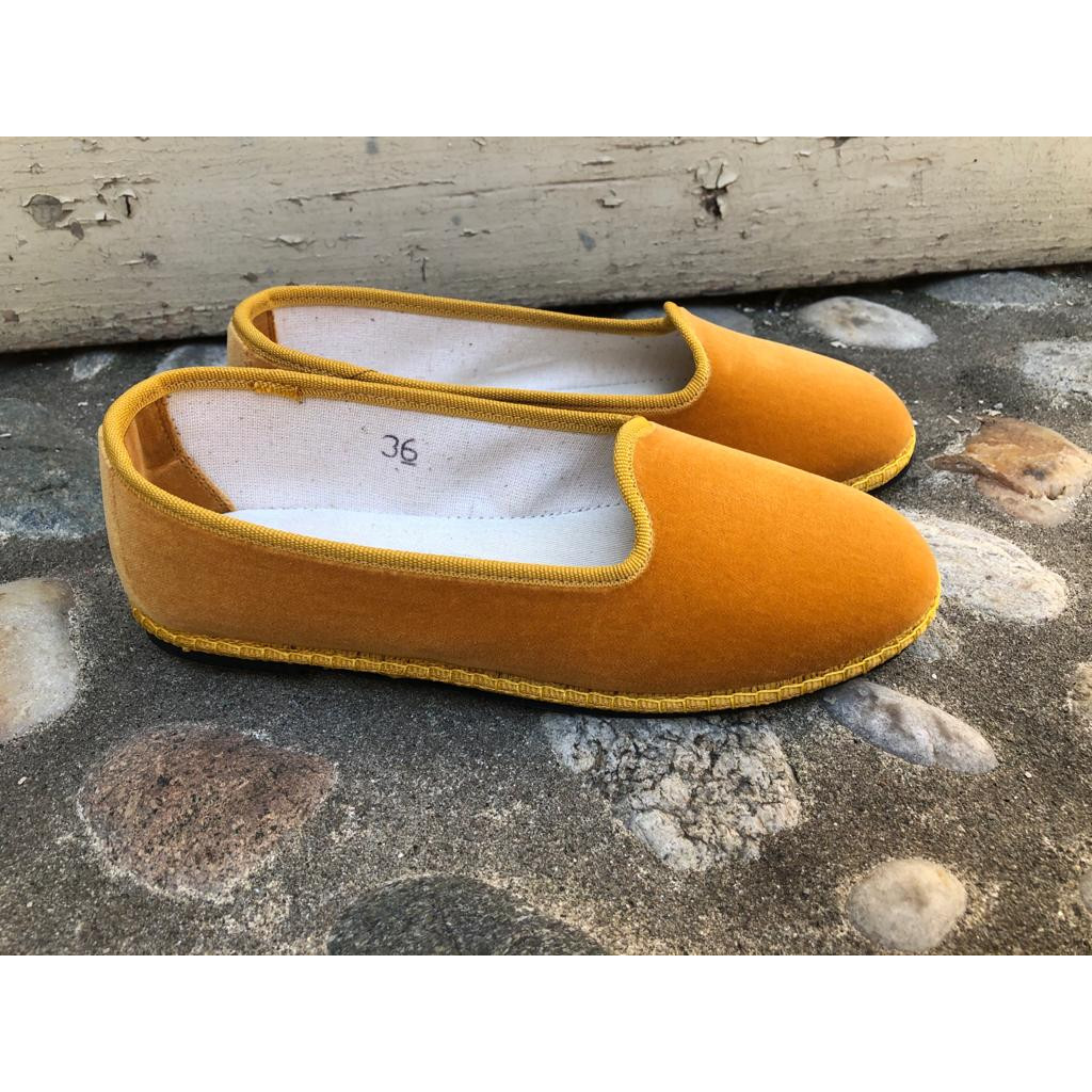 FRIULANA VELLUTO OCRA BORDO GIALLO CUCITE A MANO.