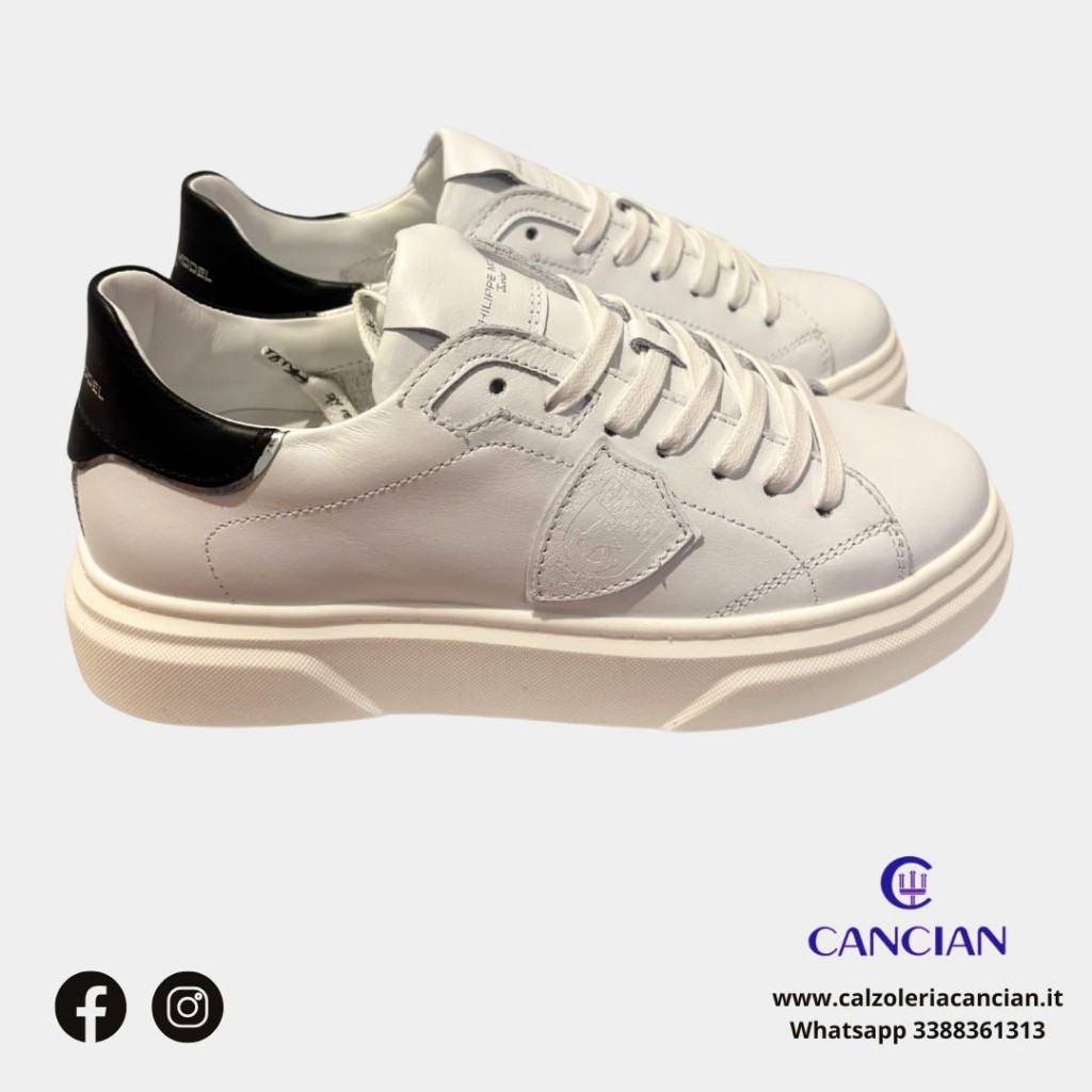SPORTIVA PELLE BIANCA, TALLONE NERO E SCUDETTO PELLE BIANCA, LACCIO BIANCO, FONDO ALTO.