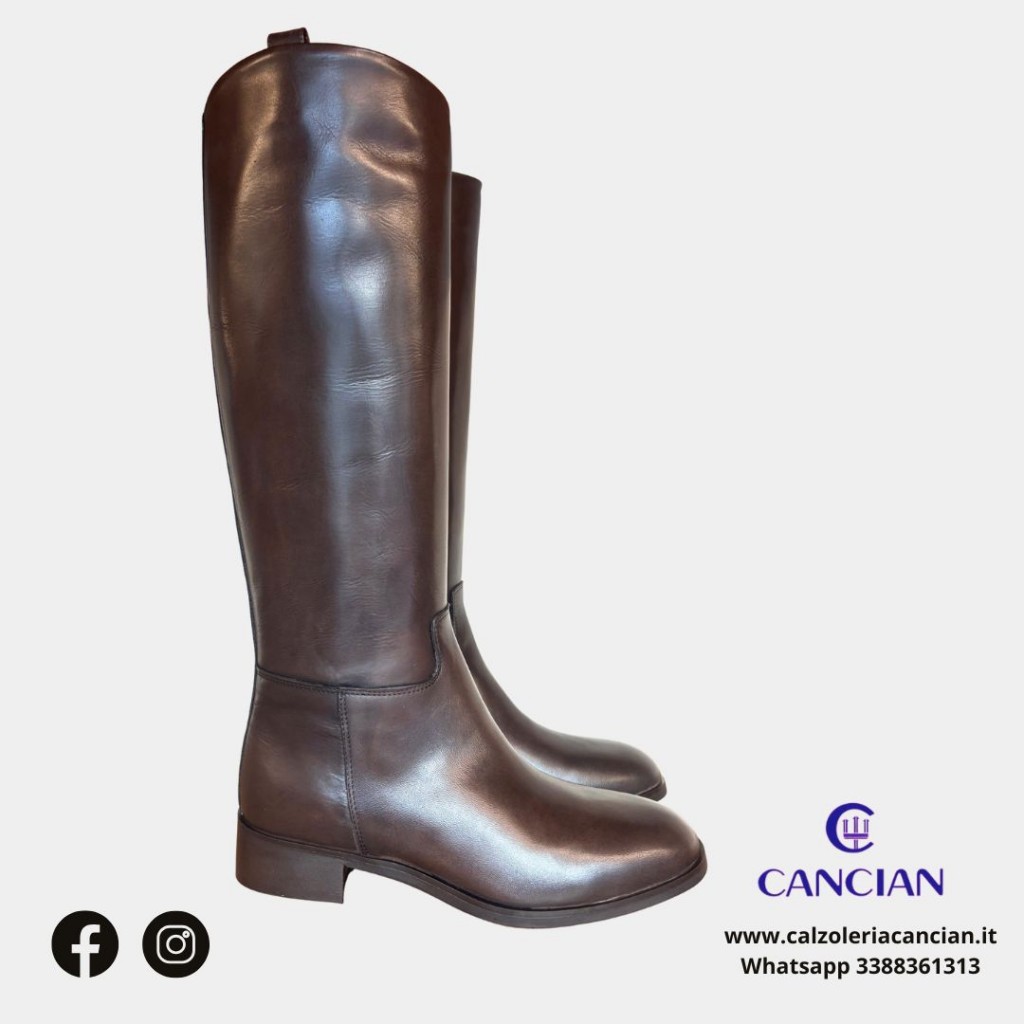 STIVALE PELLE, CALZATA TUBOLARE, CAVALLERIZZO TACCO 2 CM.