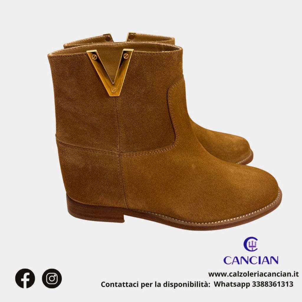 STIVALETTO CAMOSCIO ACCESSORIO V ORO CALZATA TUBOLARE ZEPPA INTERNA 4 CM INTERNO CUOIO.