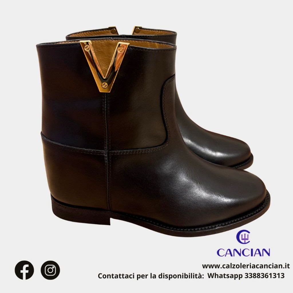 STIVALETTO PELLE ACCESSORIO V ORO CALZATA TUBOLARE ZEPPA INTERNA 4 CM INTERNO CUOIO.